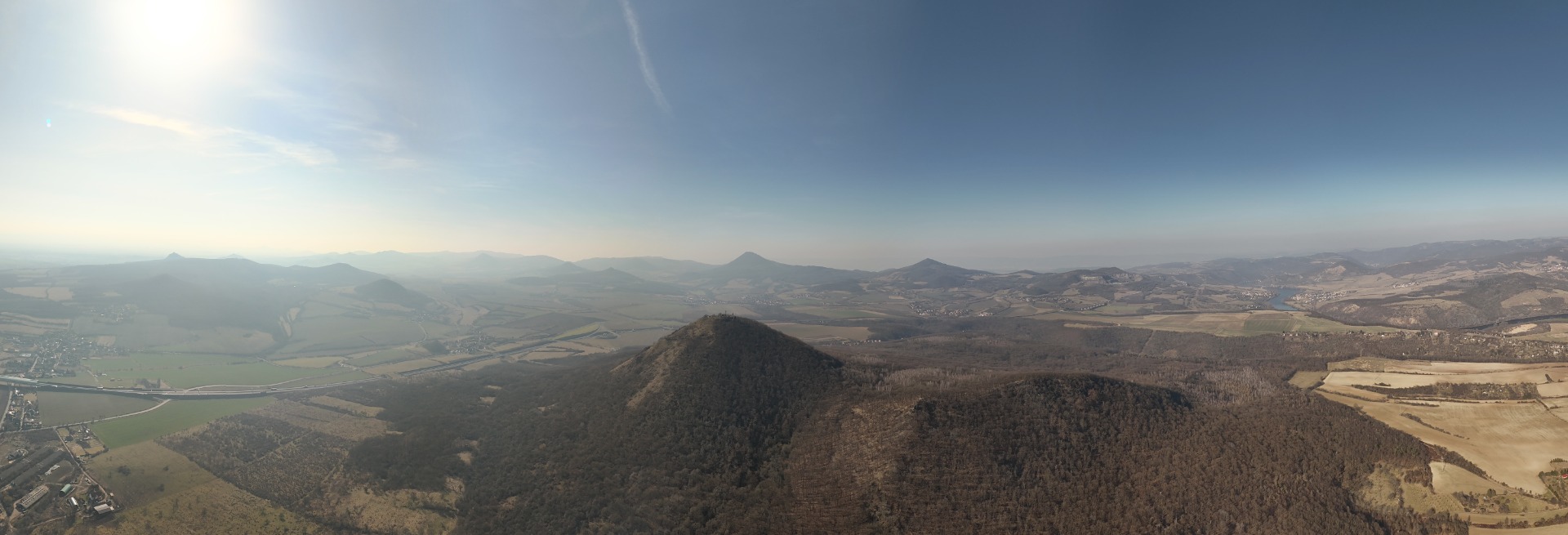Z malé vyhlídky která se nachází v přední části okolí chaty je krásný výhled na nejbližší vrcholky Českého středohoří